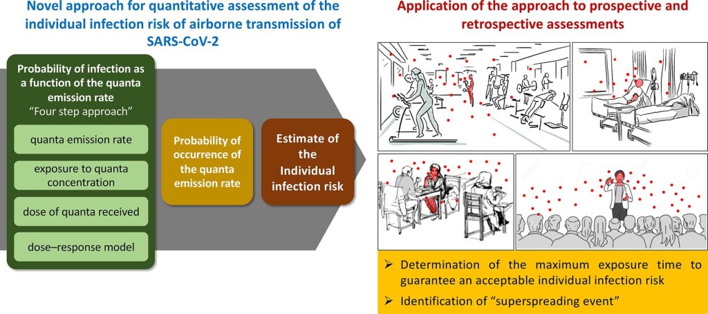 Aerogene Ansteckungsrisiken bestehen sowohl direkt, im so genannten Nahfeld, als auch indirekt im gesamten Raum, denn infektiöse Aerosole verharren lange Zeit in der Luft, auch wenn infektiöse Personen nicht länger im Raum sind, messbar mit verschiedene Methoden, um Infektionsrisiken zu berechnen und Voraussagen zu treffen.